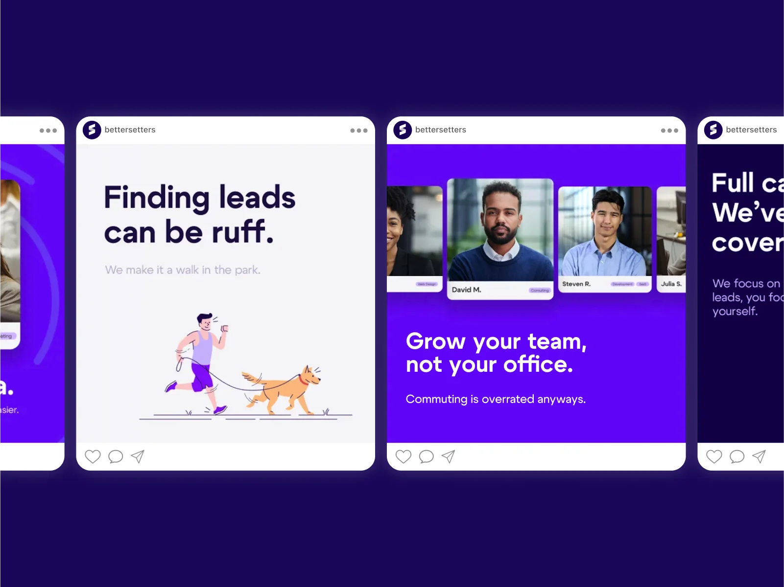 One of the hardest parts of running a startup is generating leads, especially if your team is small. BetterSetters aimed to fix this issue, by providing a team of appointment setters to startups to help with lead generation. We helped develop BetterSetter’s initial Go-To-Market strategy to help their brand stand out in a highly competitive market.
